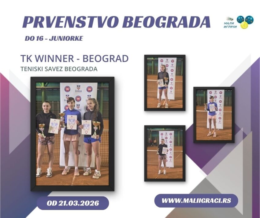 Prvenstvo Beograda, turnir B kategorije za juniorke do 16 godina, igra se od 21. marta 2026. godine u TK Winner, Beograd u okviru kalendara Teniskog Saveza Beograda. Pratimo turnir zajedno! Mina Bačanin pobednica je turnira. Drugoplasirana je Zana Perić, dok su treće mesto podelile Srna Keser i Lena Veljović. Rezultate i informacije sa ovog turnira... Детаљније
