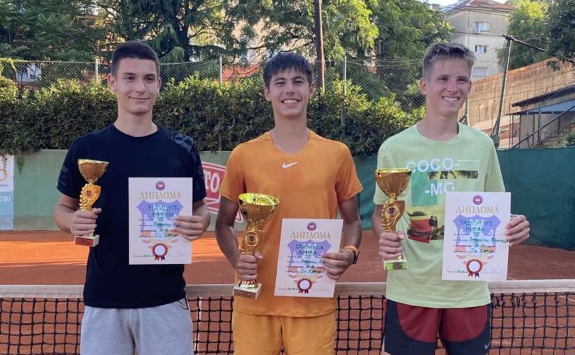 Финалисти ОП Београда до 12 година у TK Privilege Алекса Мирковић и Милош Мандић са судијом Михаилом Угрчићем