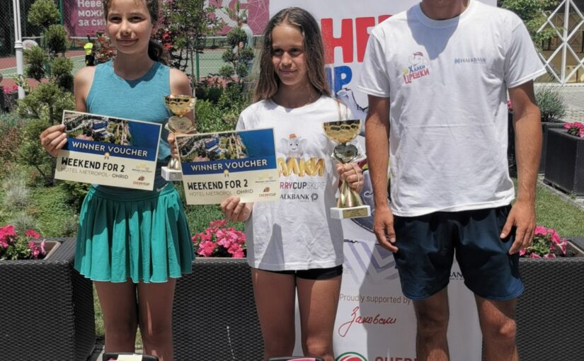 Нађа Кнежевић прима пехар за финалисткињу турнира од Немање Дервишевића, секретара Тениског савеза Београда