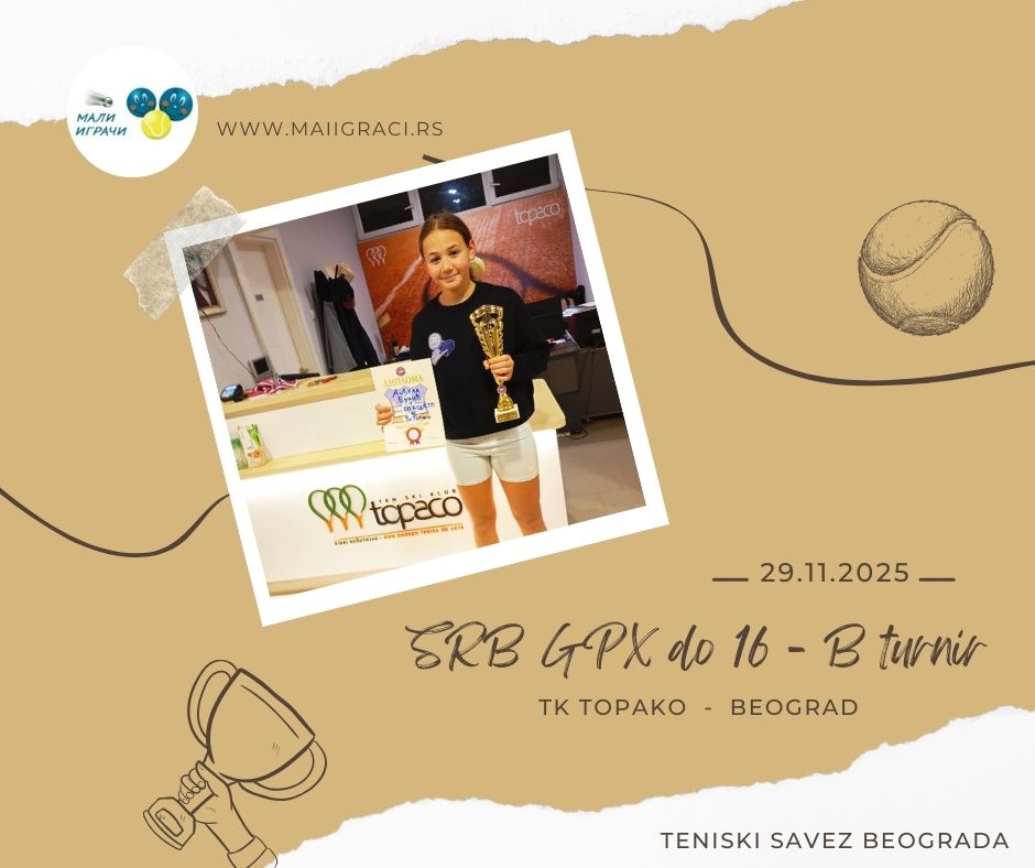 SERBIAN GRAND PRIX – turnir 3. kategorije za juniorke do 16 godina – B turnir, igra se od 29. novembra 2025. godine u TK Topaco, Beograd u okviru kalendara Teniskog Saveza Beograda. Pratimo turnir zajedno!