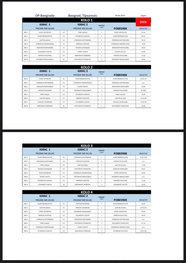 SERBIAN GRAND PRIX, turnir 3. kategorije za dečake do 12 godina (A turnir), igra se od 08. juna 2024. godine u TA Tipsarević, Beograd, u okviru kalendara Teniskog Saveza Beograda. Pratimo turnir zajedno!