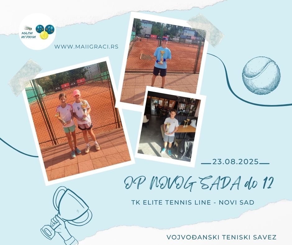 OP Novog Sada,turnir zа dečake i devojčice dо 12 godina, igra se od 27. septembra 2025. godine u ТK Elite tennis line, Novi sad, u okviru kalendara Vojvodjanskog teniskog saveza. Turniri se igraju na šljaci. Budite uz Male Igrače!