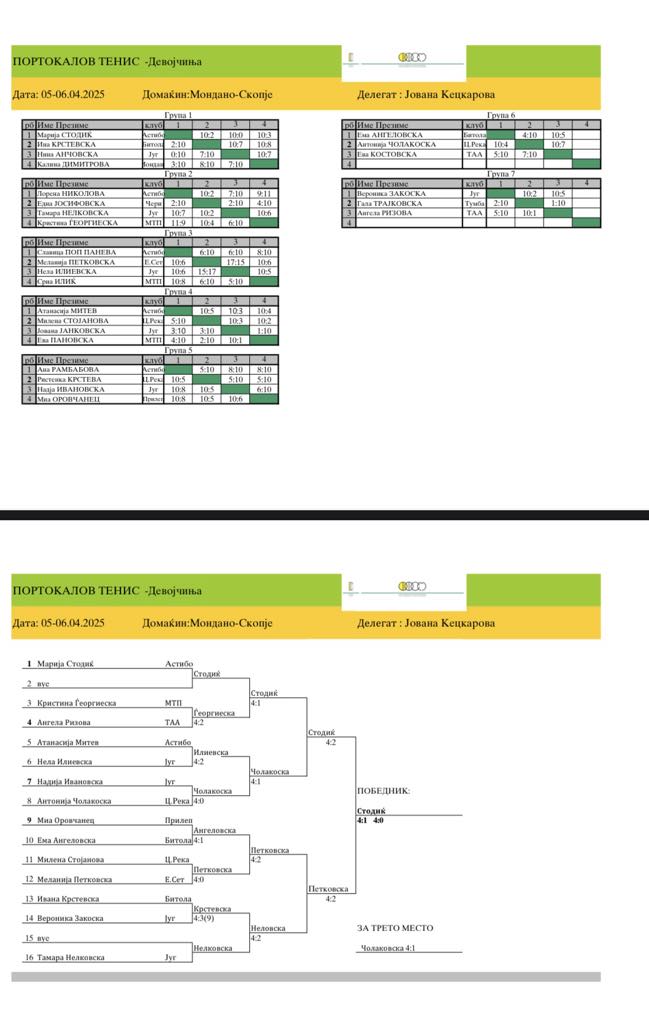 Marija Stodikj pobednička e na turnirot za devojčinja. Vtoroto mesto go osvoi Melanija Petkovska, dodeka tretoto mesto go osvoi Antonia Čolakoska.
