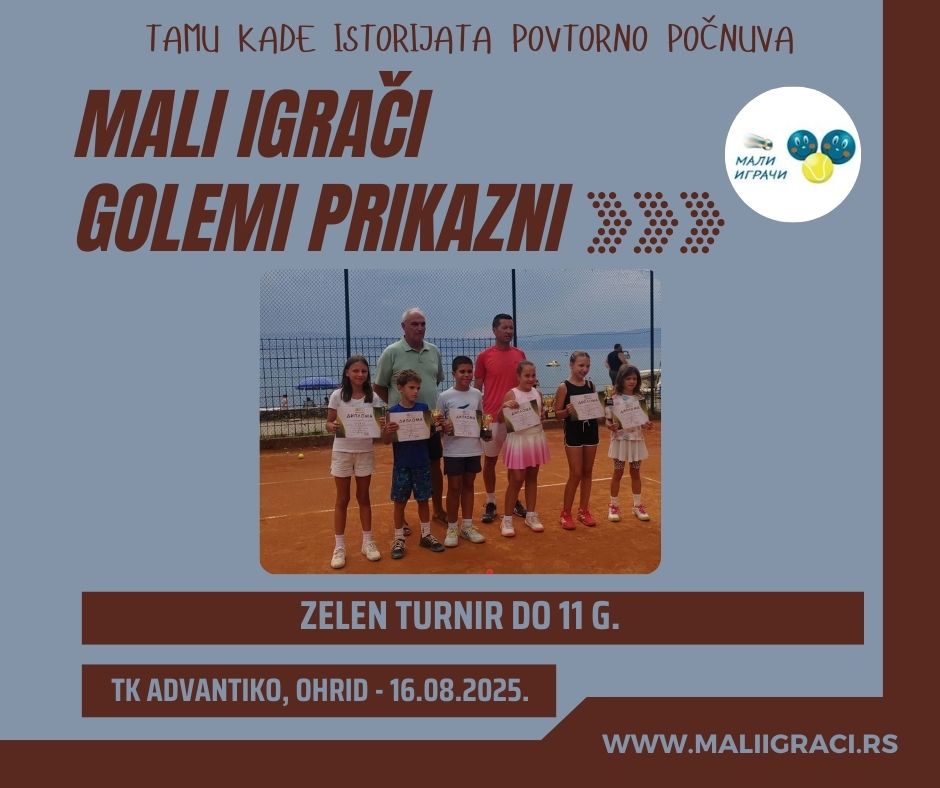 Vikendot od 16. avgust 2025 godina, vo TK Advantiko – Ohrid, se održa Zelen turnir na Makedonija, turnir za momčinja i devojčinja dо 11 godini, оd kalendarot na Teniska federacija na Severna Makedonija. Sledete go turnirot na sajtot Mali Igrači!