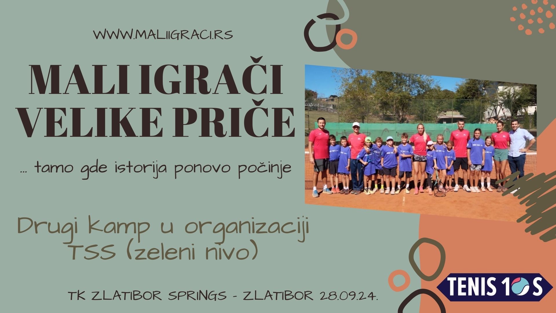 Drugi kamp Teniskog saveza Srbije za igračice i igrače Zelenog nivoa održan je proteklog vikenda na terenima kluba TK Zlatibor Springs. Najmlađi takmičari su, pored rada sa trenerima Sarom Gvozdenović, Anamarijom Stevanović, Nikolom Kovačevićem, Milanom Velimirovićem, imali priliku da saznaju dosta o tenisu od dr. Tamare Kovačević, rukovodioca kampa i predsednice Trenerskog odbora i člana Odbora za razvoj tenisa.