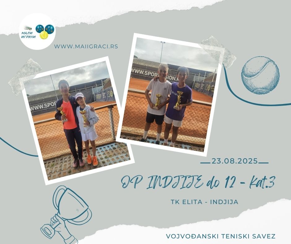 OP Inđije do 12 godina za devojčice i dečake , igra sе 30. avgusta 2025. godine u TK Elita, Inđija, u okviru kalendara Vojvođanskog teniskog saveza. Budite uz Male Igrače!