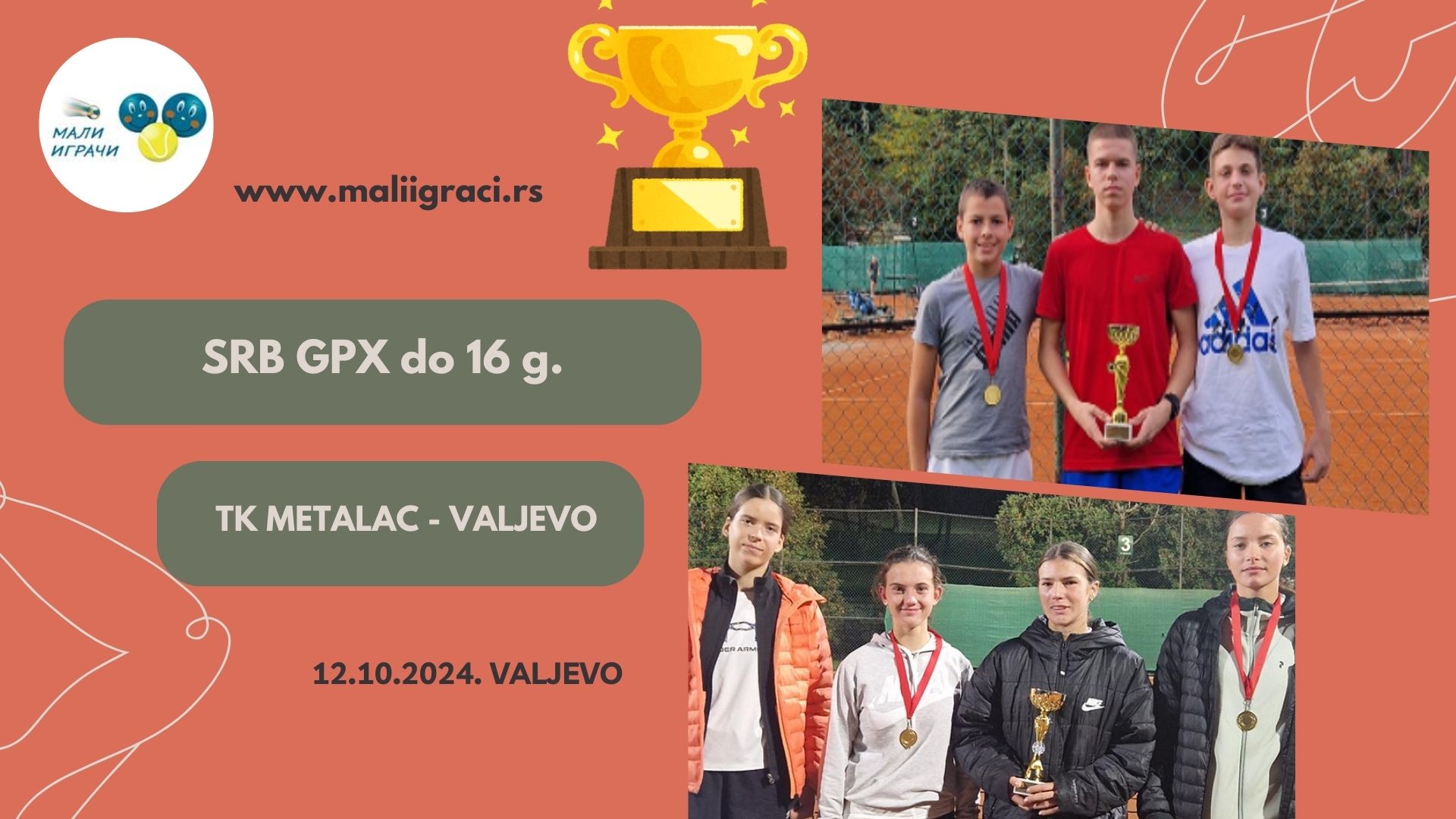 SERBIAN GRAND PRIX, turnir 3. kategorije za juniore i juniorke do 16 godina, igra se 12. i 13. oktobra 2024. godine u TK Metalac u Valjevu u okviru kalendara Teniskog saveza Šumadije i zapadne Srbije. Pratimo turnir zajedno!