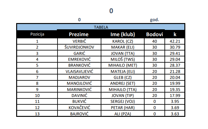Karol Verbič pobednik je turnira za juniore. Drugo mesto osvojili su Makar Šuvirdjonkov, Jovan Garić, Miloš Emreković i Mihailo Branković.