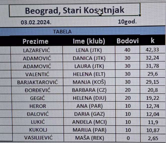 Детаљније Lena najbolja na OP Beograda (zeleni nivo) – devojčice – TK Stari Košutnjak, Beograd 03.02.-04.02.24.