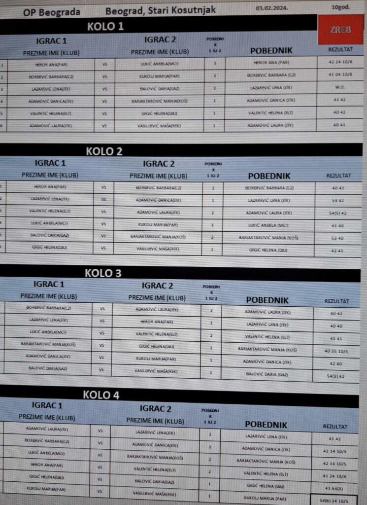 Otvoreno prvenstvo Beograda, turnir zelenog nivoa za devojčice do 10 godina, igra se od 03. i 04. februara 2024. godine u TK Stari Košutnjak, Beograd, u okviru kalendara Teniskog Saveza Beograda. Pratimo turnir zajedno!