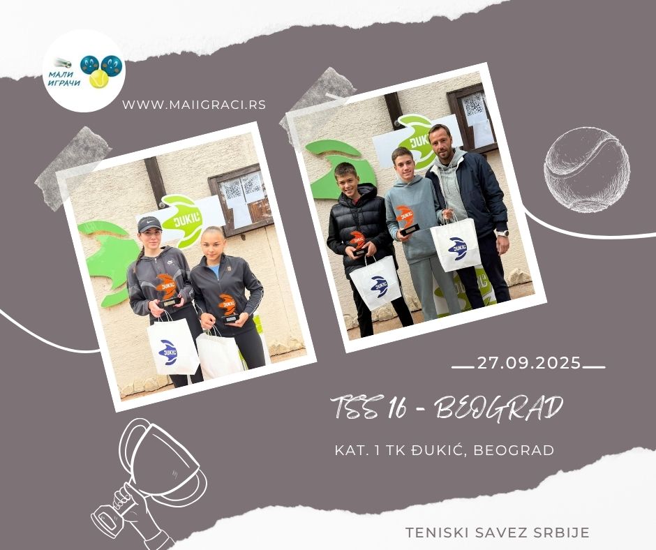 TSS 16 – Beograd, turnir prve kategorije za juniore i juniorke do 16 godina igra se od 27. septembra 2025. godine u TK Đukićć, Beograd, u okviru kalendara Teniskog saveza Srbije. Pratimo turnir. Budite uz Male igrače!
