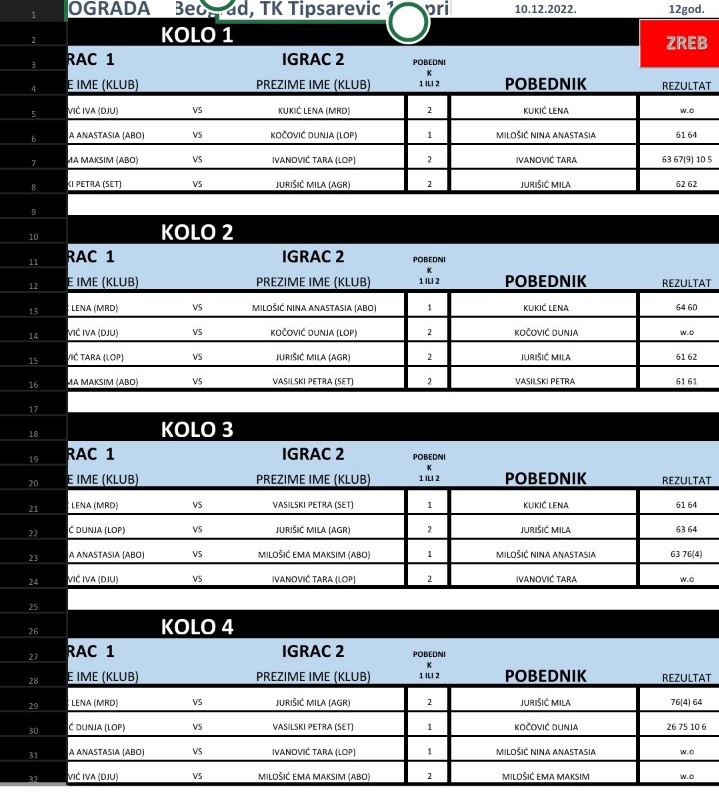 Турнир SERBIAN GRAND PRIX, турнир 3. категорије за девојчице (Б турнир) до 12 година, тзв. „швајцарац“, игра се од 10. и 11. децембра 2022. године у ТА Типсаревић, у оквиру календара Тениског савеза Београда. Игра се на шљакастим теренима. Будите уз Мале играче!