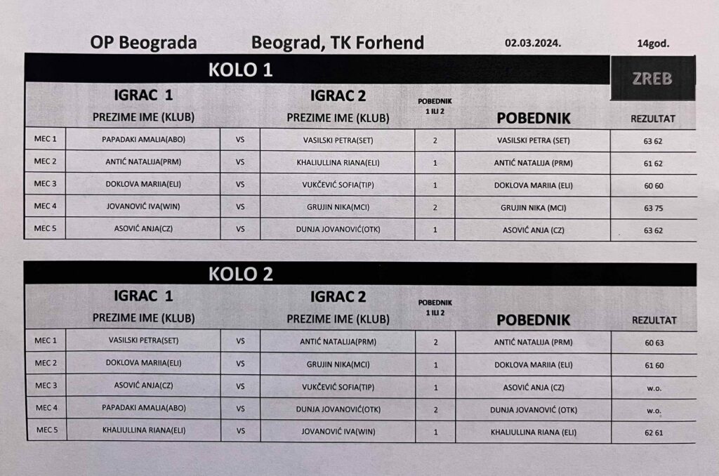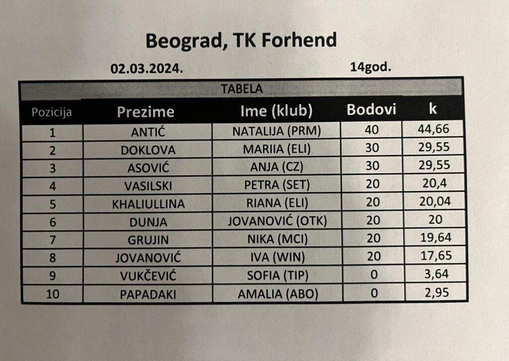 Детаљније Natalija najbolja na SRB GPX za devojčice do 14g. – TK Forhend (B turnir), Beograd, 02.03.2024