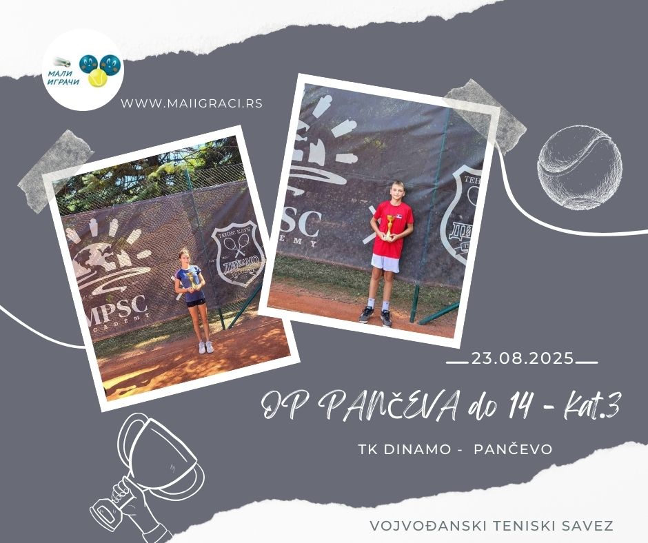 OP Pančeva do 14 godina za devojčice i dečake , igra sе 23. avgusta 2025. godine u TK Dinamo, Pančevo, u okviru kalendara Vojvođanskog teniskog saveza. Budite uz Male Igrače!