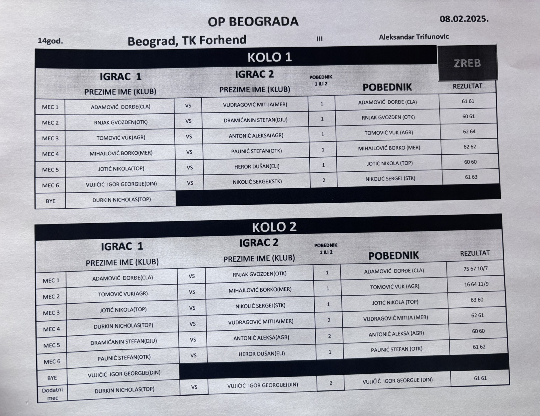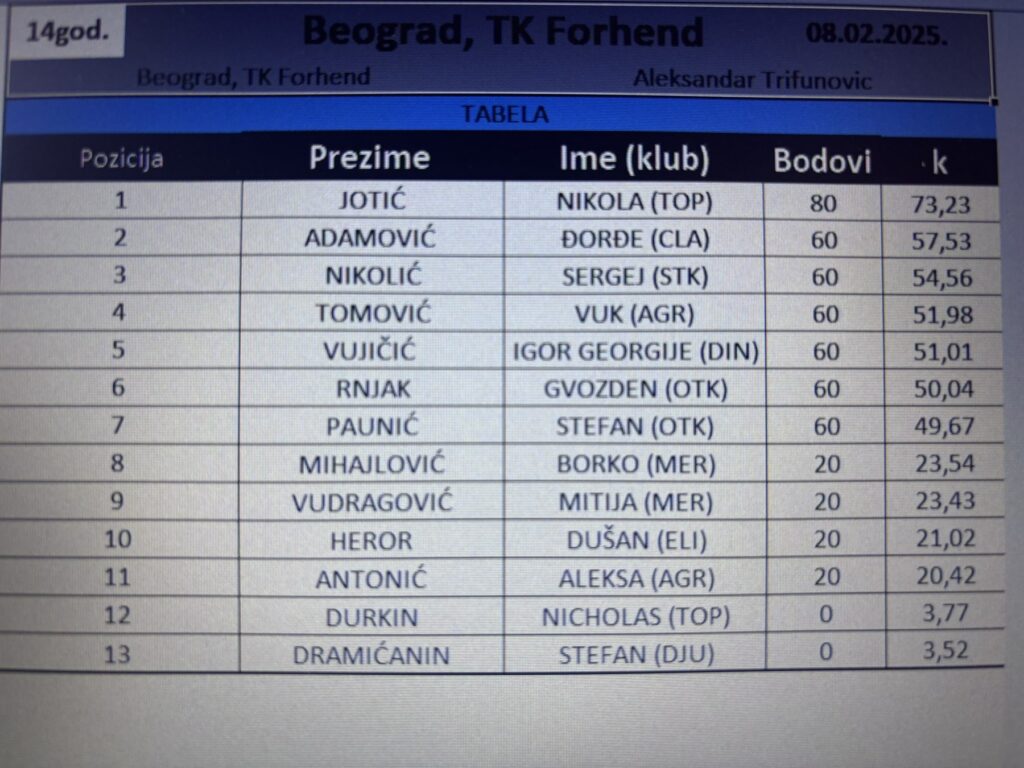 Детаљније Nikola najbolji na SRB GPX za dečake do 14g. – TK Forhend, Beograd, 08.02.2025.