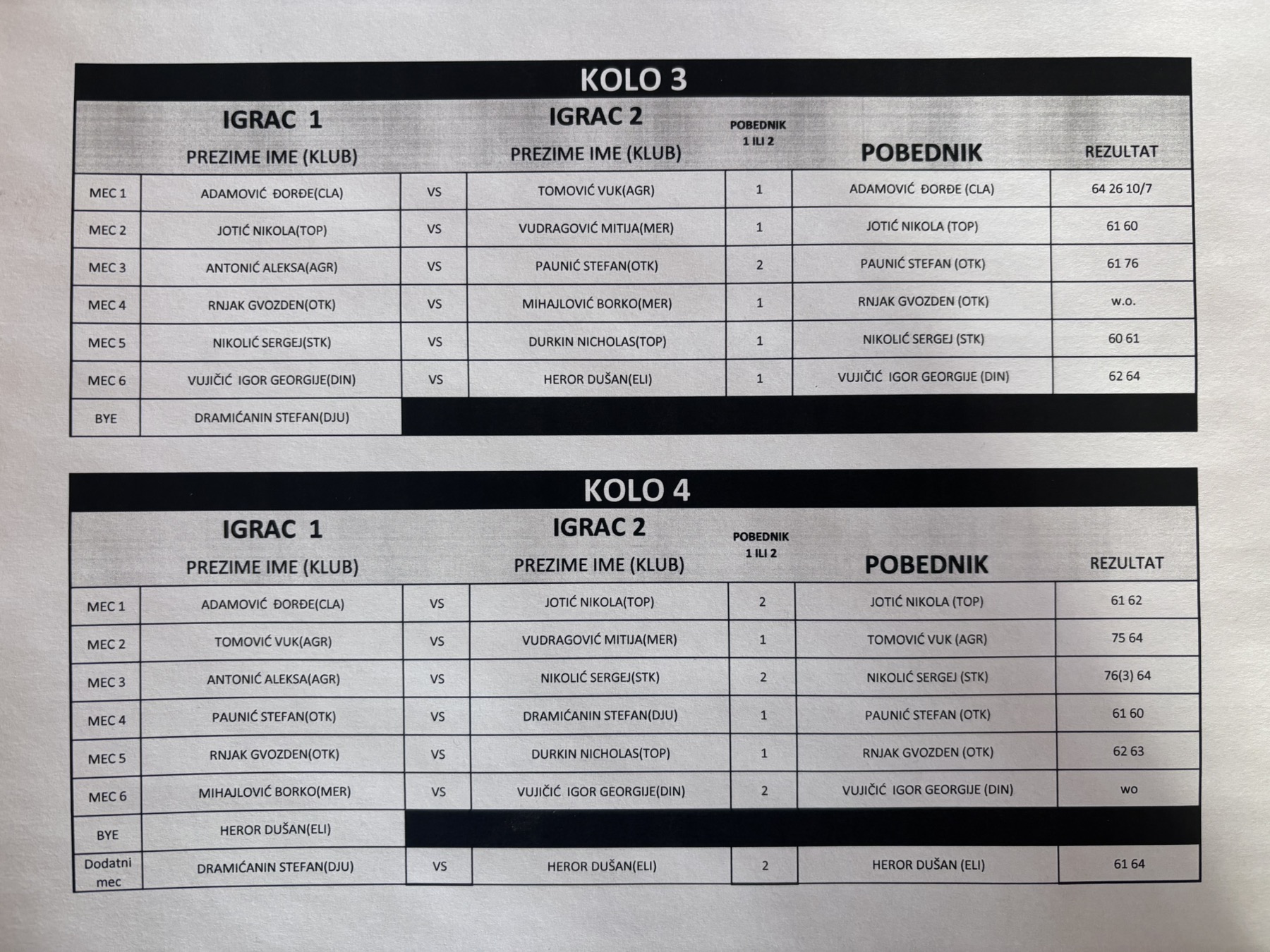 Nikola Jotić pobednik je turnira. Drugo mesto osvojili su Đorđe Adamović, Sergej Nikolić, Vuk Tomović, Igor Georgije Vujićić, Gvozden Rnjak i Stefan Paunić.