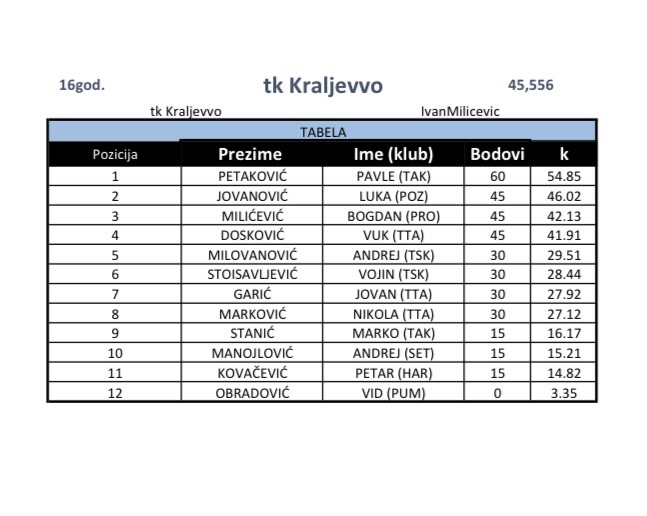 Pavle Petaković pobednik je turnira. Drugo mesto osvojili su Luka Jovanović, Bogdan Miličević i Vuk Dosković.