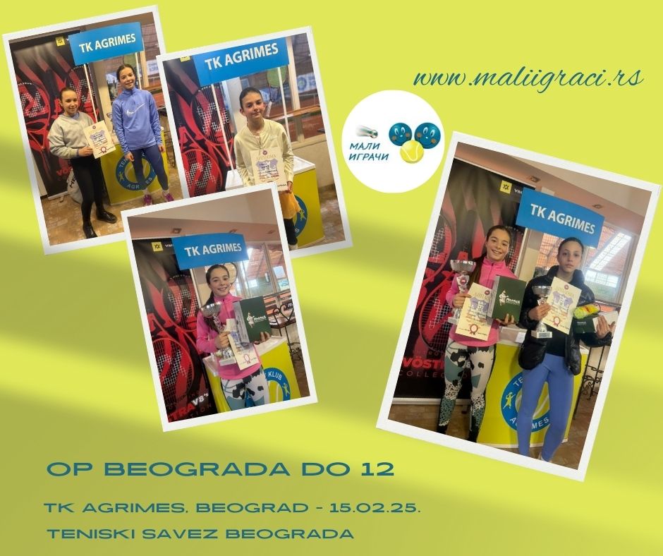 OP Beograda, turnir 3 kategorije za devojčice do 12 godina igra se od 15. februara 2025. godine u TK Agrimes, Beograd, u okviru kalendara Teniskog saveza Beograda. Pratimo turnir. Budite uz Male igrače!