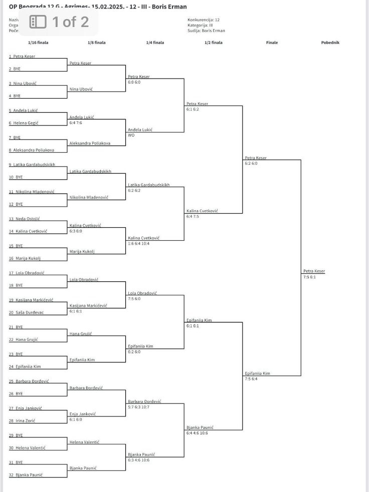 Petra Keser pobednica je turnira. Drugo mesto osvojila je Epifaniia Kim, dok su treće podelili Kalina Cvetković i Bjanka Paunić.