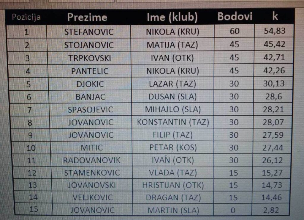 Konačni plasman dečaka: