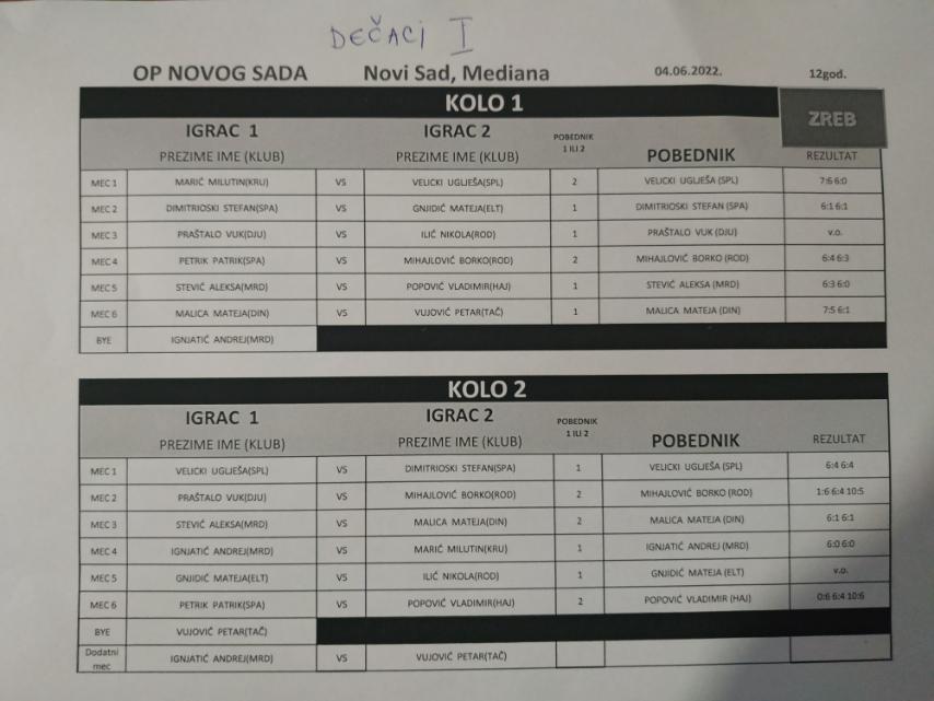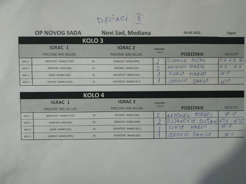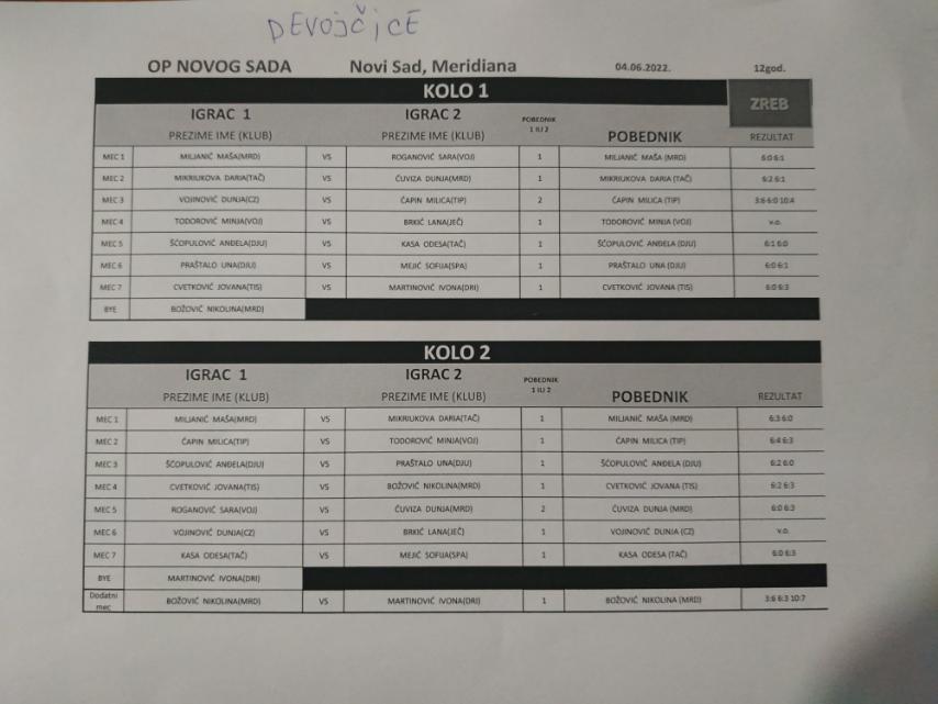 1. Hteo bih da dodam u vestima sa turnira da su nezvanično finale igrale Maša Miljanić 16.04.2010.god.i Anđela Šćopulović 04.12.2012.god. Meč je trajao 3h i posle velike borbe Maša je pobedila rezultatom 6:3, 6:3.