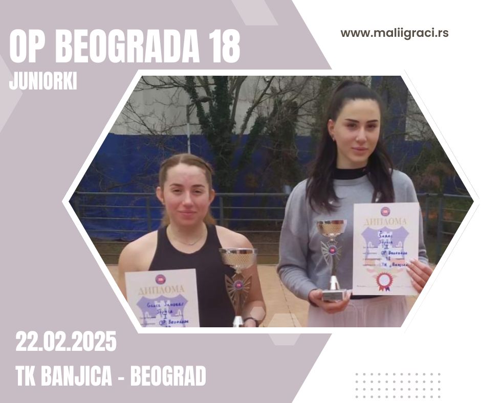 OP Beograda, turnir 3 kategorije za juniorke do 18 godina igra se od 22. februara 2025. godine u TK Banjica, Beograd, u okviru kalendara Teniskog saveza Beograda. Pratimo turnir. Budite uz Male igrače!