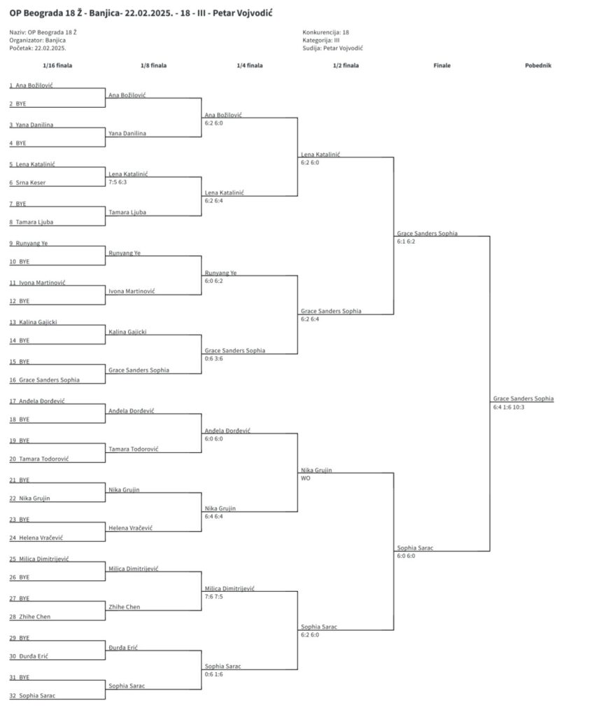 Детаљније Sophia najbolja na OP Beograda – juniorke do 18 g. (kat.3) – TK Banjica, Beograd – 22.02.2025.