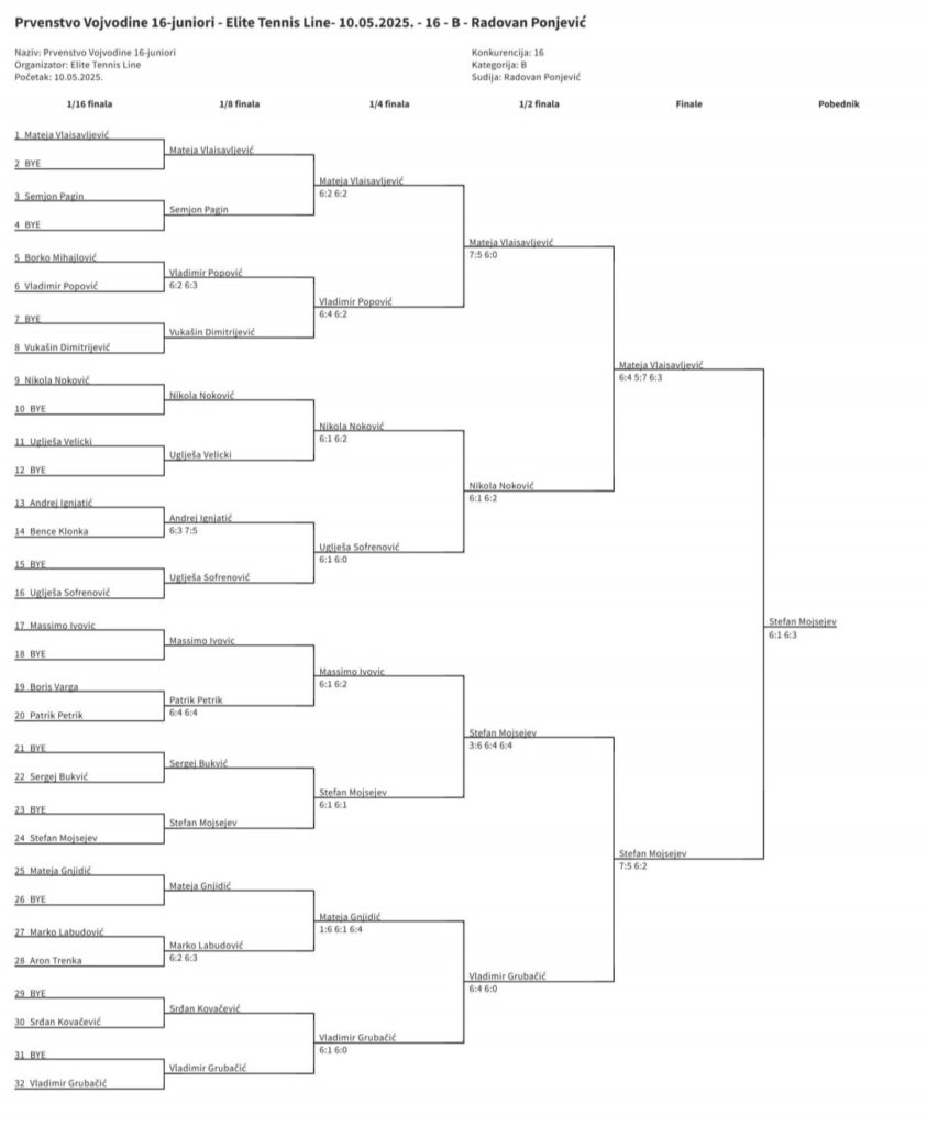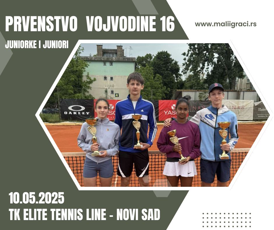 Prvenstvo Vojvodine do 16 godina za juniore i juniorke, igra sе 10. maja 2025. godine u okviru kalendara Vojvođanskog teniskog saveza. Budite uz Male Igrače!