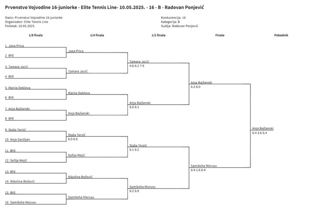 Anja Bajšanski prvakinja je Vojvodine do 16 g. Drugo mesto je osvojila Samiksha Morusu. Treće mesto su podelile Tamara Jocić i Staša Terzić.