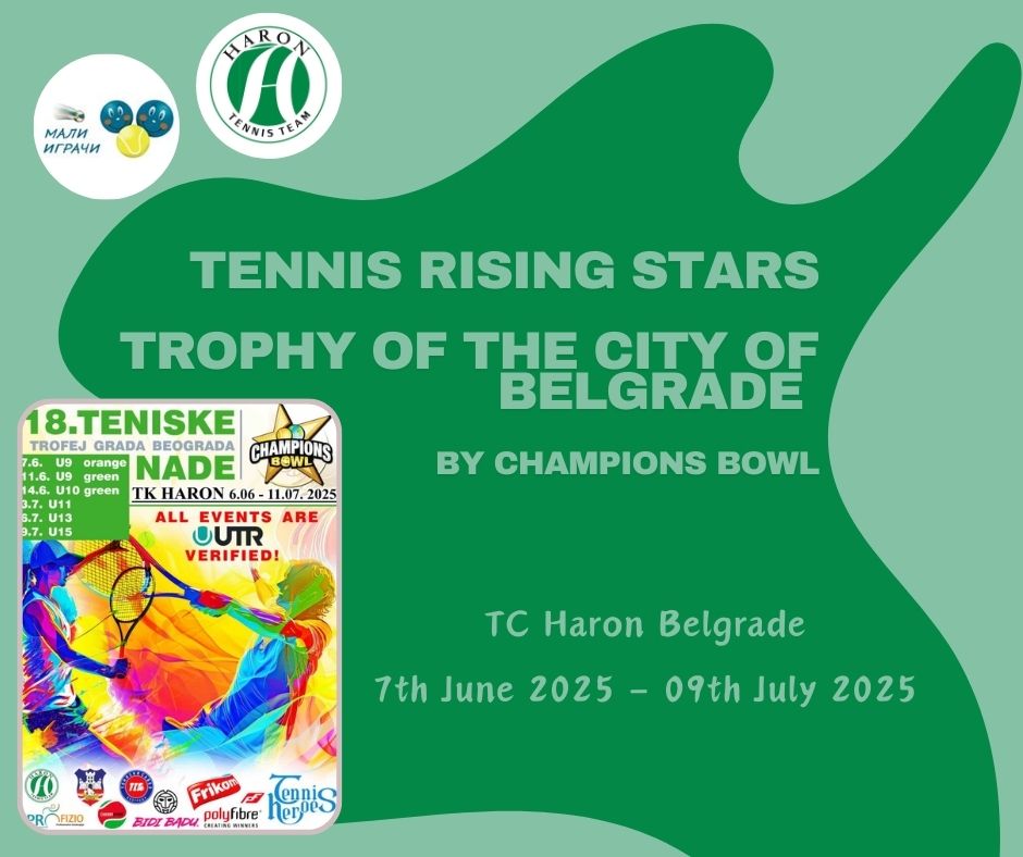 Детаљније Tennis rising stars – Trophy of the city of Belgrade by Champions bowl – TC Haron Belgrade, 7th June 2025 – 09th July 2025