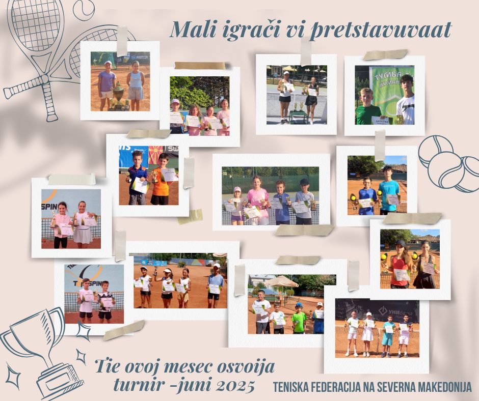 Vo mesec juni 2025 godina, vo Makedonija, se održaa slednite turniri za momčinja i devojčinja, kako i juniori i juniorki, оd kalendarot na Teniska federacija na Severna Makedonija. Prosledete ja retrospektivara na sajtot Mali Igrači!