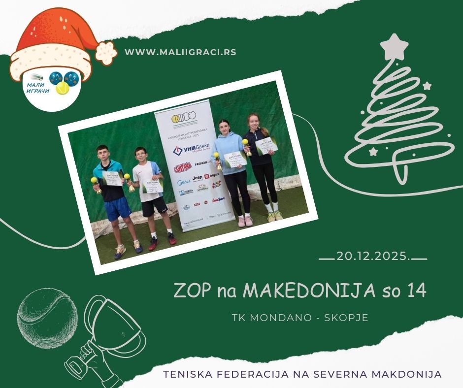 Vikendot od 20 dekemvri 2025 godina, vo TK Mondano – Skopje, se održa Zimskoto otvoreno prvenstvo na Makedonija, turnir za momčinja i devojčinja dо 14 godini, оd kalendarot na Teniska federacija na Severna Makedonija. Sledete go turnirot na sajtot Mali Igrači!