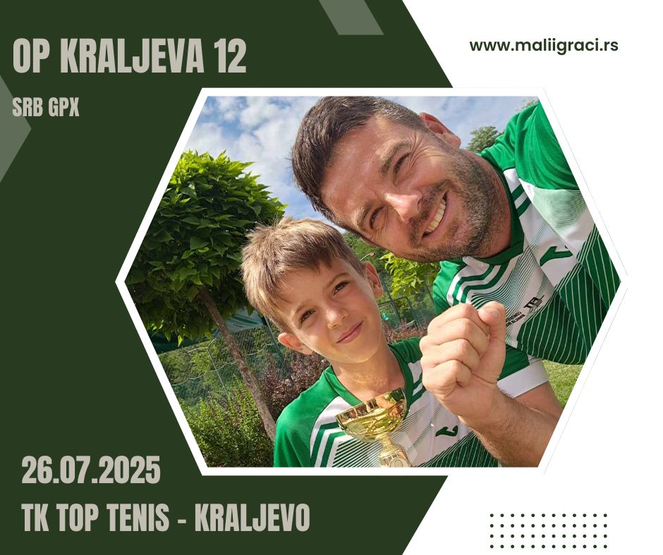 SRB GPX, turnir 3. kategorije za dečake do 12 godina, igra se 26. jula 2025. godine u TK Top tennis u Kraljevu u okviru kalendara Teniskog saveza Šumadije i zapadne Srbije. Pratimo turnir zajedno!